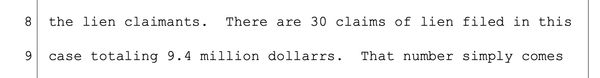 So after telling the bankruptcy court that the Quandel lien was $5,968,282 (see Exhibit F above), Hammer's partner, Dolan, said it was overstated substantially and should be discharged entirely! Later Canyon agreed to pay $600,000 to Quandel instead of the nearly $6 Million that Hammer told the bankruptcy court.